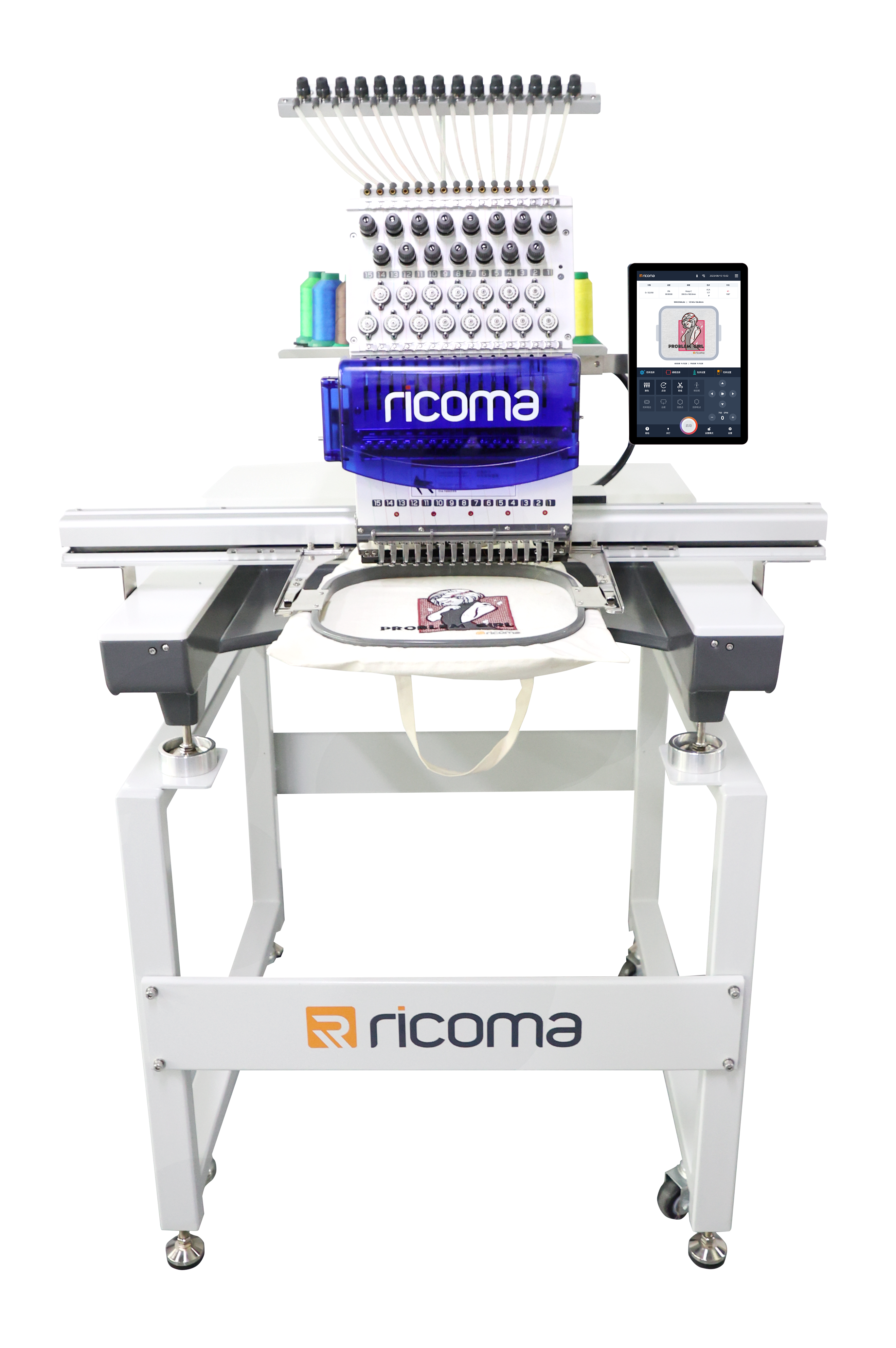 A professional single-head embroidery machine with 15 needles, suitable for small and medium factories and commercial projects. It features a 10-inch smart touch screen and a compact design, making it capable of embroidering on a wide range of materials such as caps, bags, ready-made garments, and even thick fabrics. It delivers high performance, fast execution, and exceptional precision.
