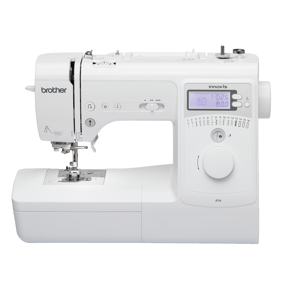 Includes 16 Built-In Stitches, including 3 Buttonhole Stitches, offering versatility for different sewing needs.