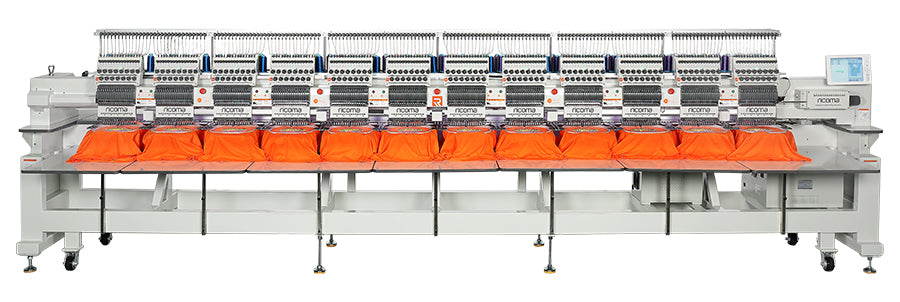 Ricoma CHT2 Series offers 12 heads models to match any production level. machine is packed with 15-needle heads, automatic color change, thread break detection.