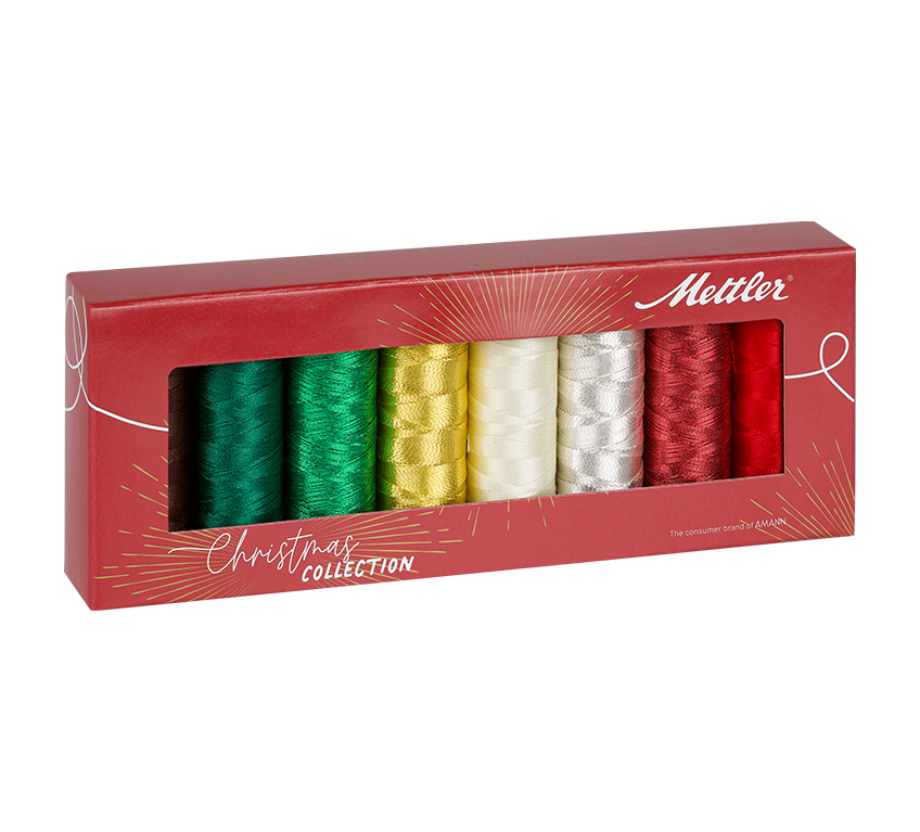Set includes 4 spools of shiny polyester sewing thread (200m/220yds each) and 4 spools of shiny polyester sewing thread (100m/110yds each) in Christmas colors. Polysheen is highly elastic with 50% higher tensile strength than rayon, making it ideal for various applications including sportswear, leisurewear, children's clothing and more. Its triple qualities enhance light reflection, resulting in a brilliant appearance. Ideal for decorative embroidery and stitching, and compatible with high-performance machines