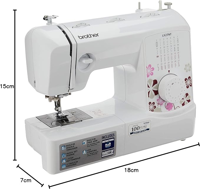 27غرزة مدمجة لتوفير تنوع في المشاريع المختلفة والأنماط الإبداعية.